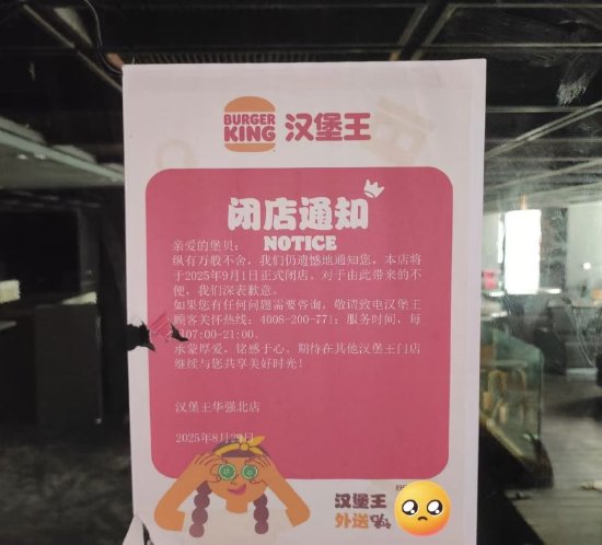 9月15日晚间消息,近日有网友在社交平台发文称,汉堡王深圳华强北店在8月底贴出闭店通知,并于9月1日正式闭店。据了解,华强北店是深圳最早的4家汉堡王门店之一,目前在大众点评上该店也显示“歇业关闭”。